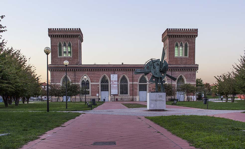 Il Museo ha sede nell’edificio che ospitava il reparto di filatura di una delle principali manifatture locali, il Cotonificio Carlo Ottolini, poi Bustese, significativo esempio di archeologia industriale. La filatura, probabilmente edificata tra il 1891 e il 1896, presenta evidenti richiami al neogotico lombardo dell’epoca: una struttura in mattoni a vista dalle forme castellane, con ampi finestroni ogivali, decorazioni antropomorfe, merlature e torri. A partire dagli anni Settanta, nuove esigenze produttive portarono al trasferimento delle attività in Valle Olona; il Comune di Busto Arsizio acquisì quindi l’intera area, avviando la realizzazione del parco pubblico che ancora oggi circonda l’ex fabbrica. L’edificio fu successivamente sottoposto a un attento restauro e destinato a museo dell’industria, divenendo luogo simbolo della tradizione lavorativa locale.